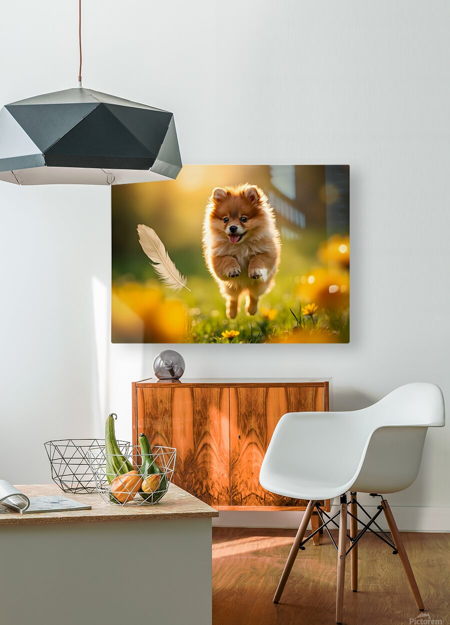 Get this artwork "Feather Lands On Happy Pomeranian Puppy" in a framed print.
