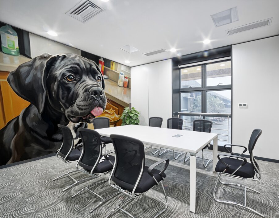 ABOUT THIS ARTWORK: CURIOUS CANE CORSO PUPPY DISCOVERS NEW TREAT