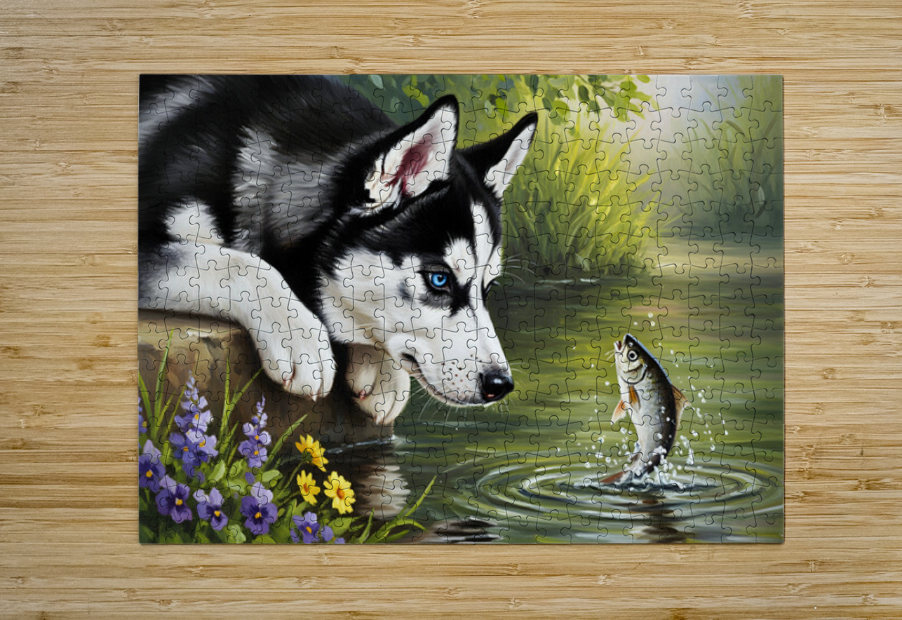 Curious Husky Puppy Discovers Garden Pond Puppy Prints Puzzle printing