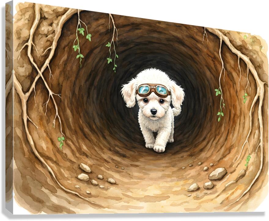 Poodle Puppy Finds Amazing Underground Chamber Canvas print