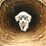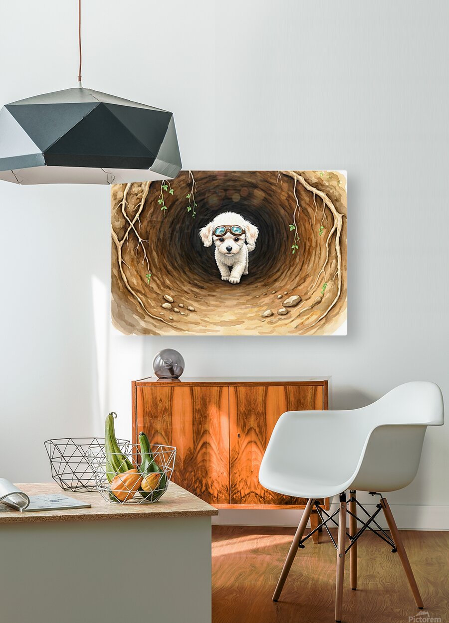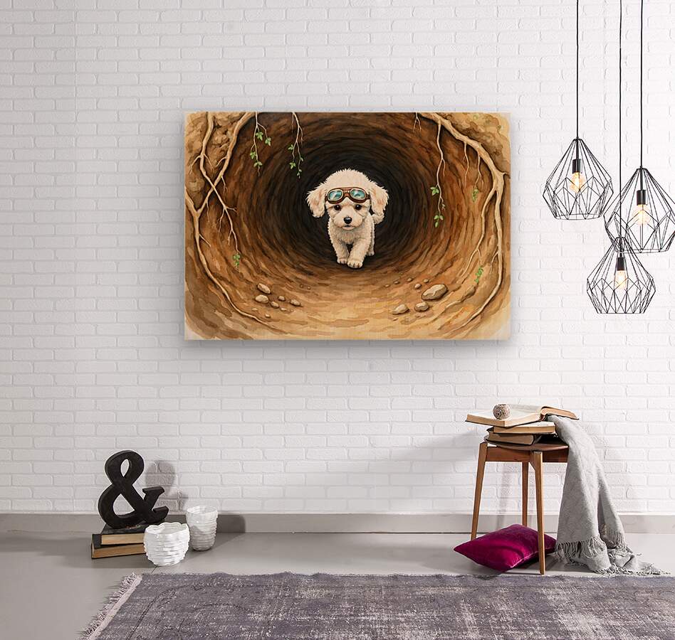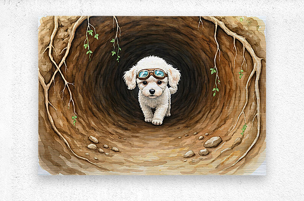 ABOUT THIS ARTWORK: POODLE PUPPY FINDS AMAZING UNDERGROUND CHAMBER