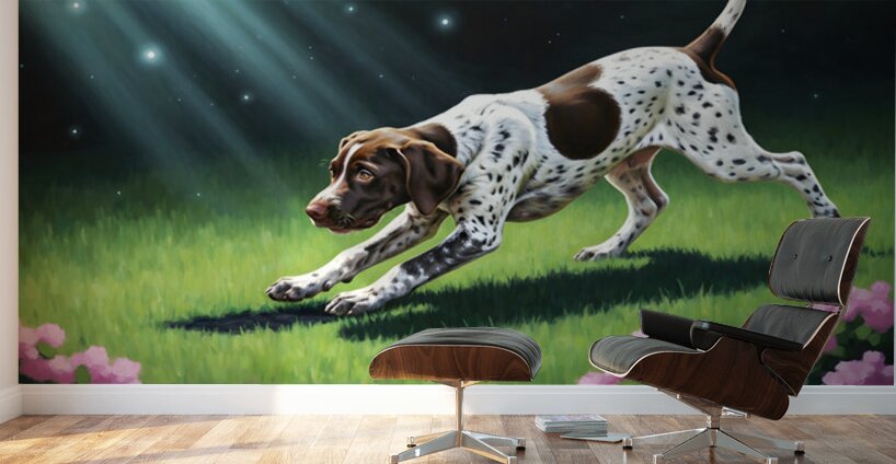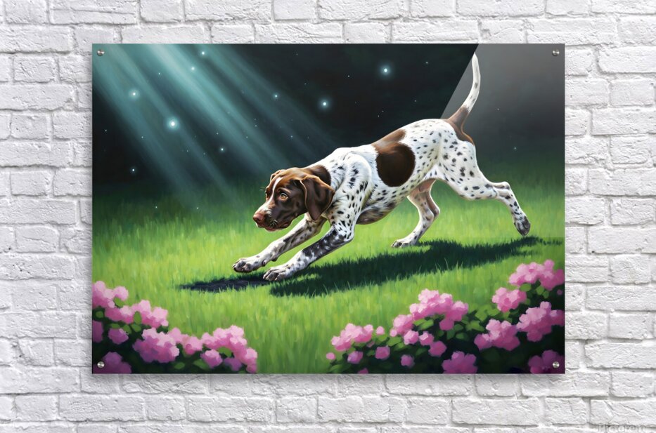 Get this artwork "German Shorthaired Pointer Puppy Discovers Night Shadows" in a framed print.