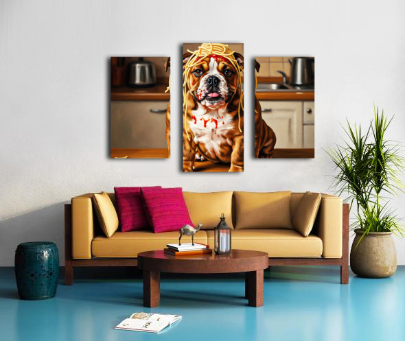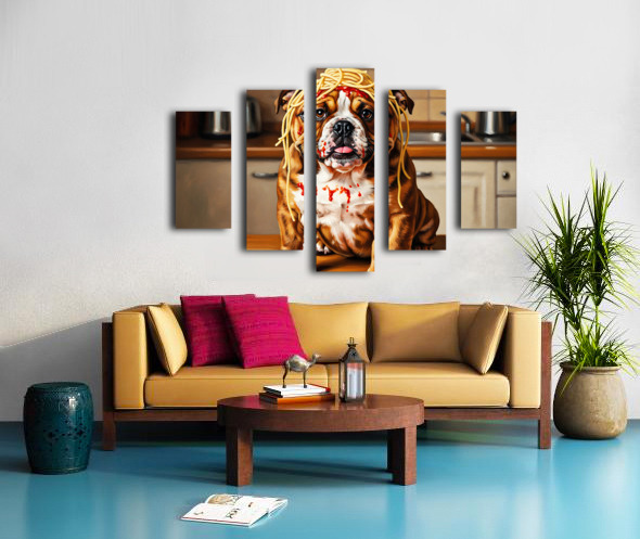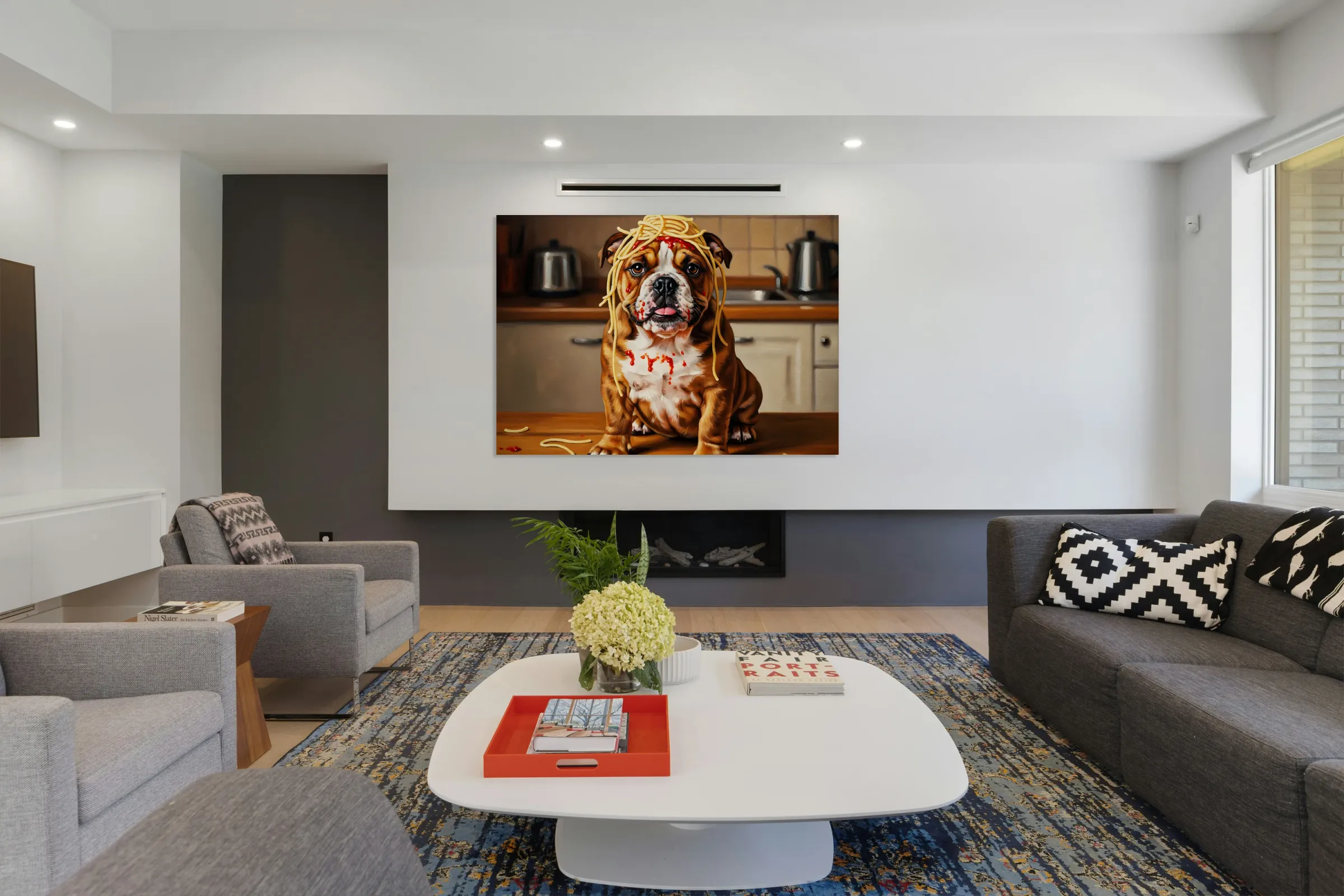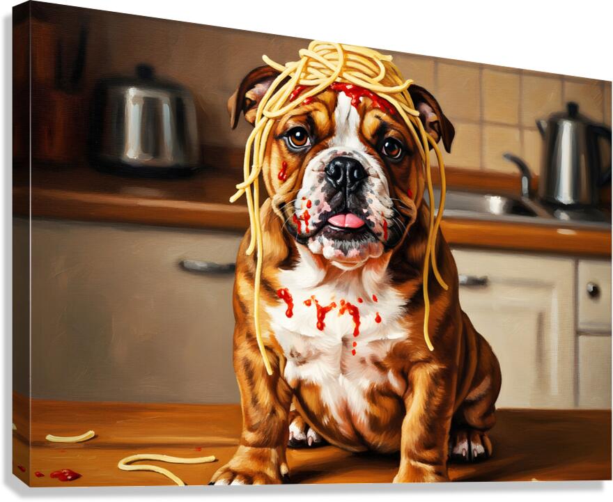 Happy Puppy After Finishing Spaghetti Adventure Canvas print