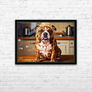 Happy Puppy After Finishing Spaghetti Adventure Picture Frame Printing