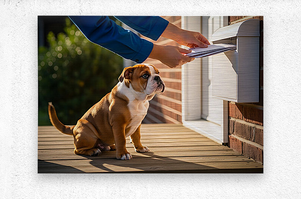 Bulldog Puppy Waves Goodbye To Mail Carrier Picture Frame Printing