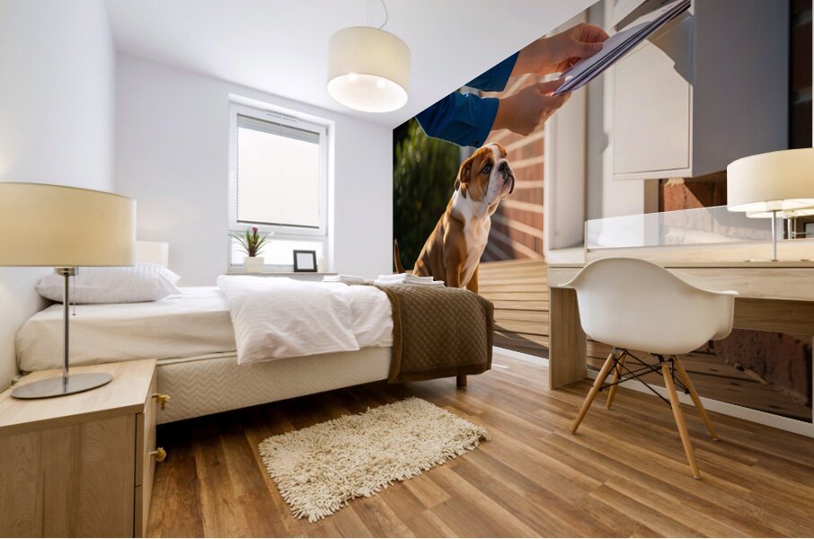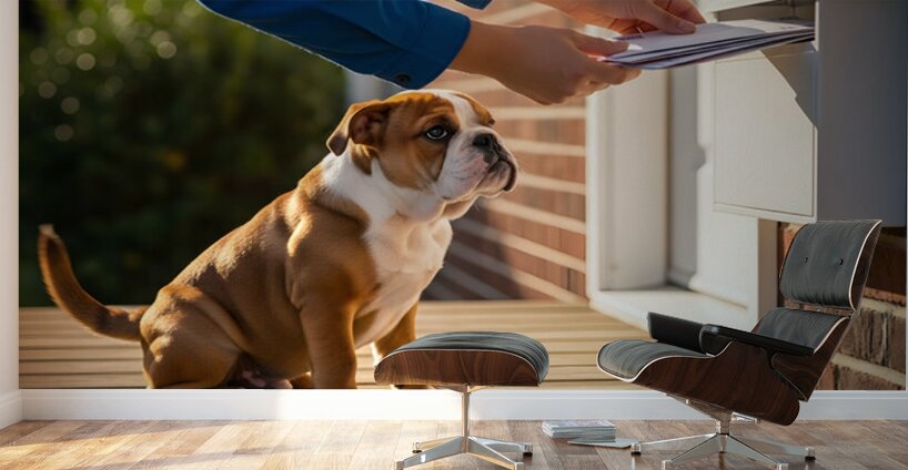 Get this artwork "Bulldog Puppy Waves Goodbye To Mail Carrier" in a framed print.