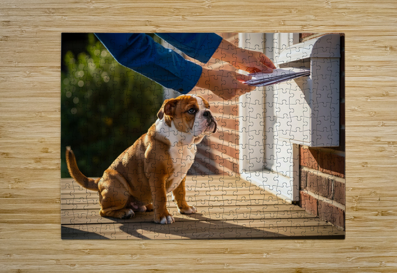 Bulldog Puppy Waves Goodbye To Mail Carrier Puppy Prints Puzzle printing