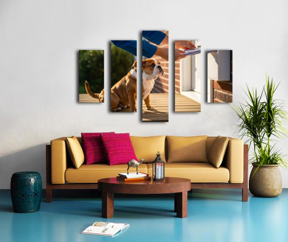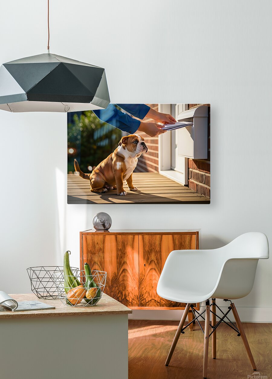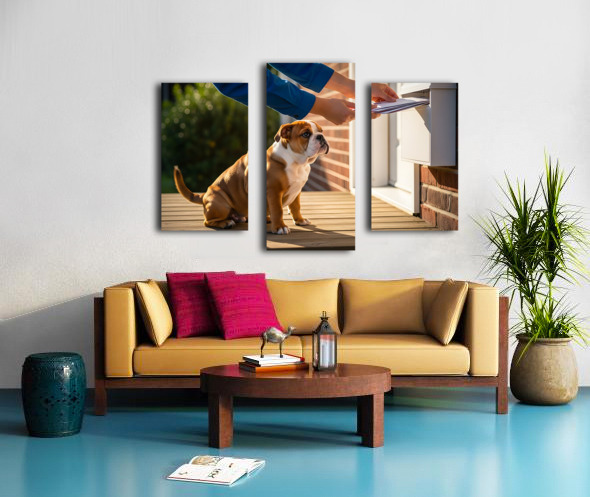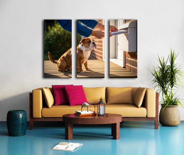 Bulldog Puppy Waves Goodbye To Mail Carrier Canvas print