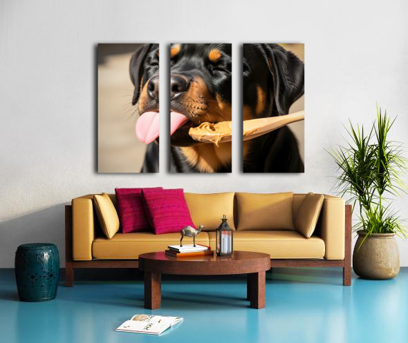 Happy Rottweiler Puppy After Tasty Discovery Canvas print