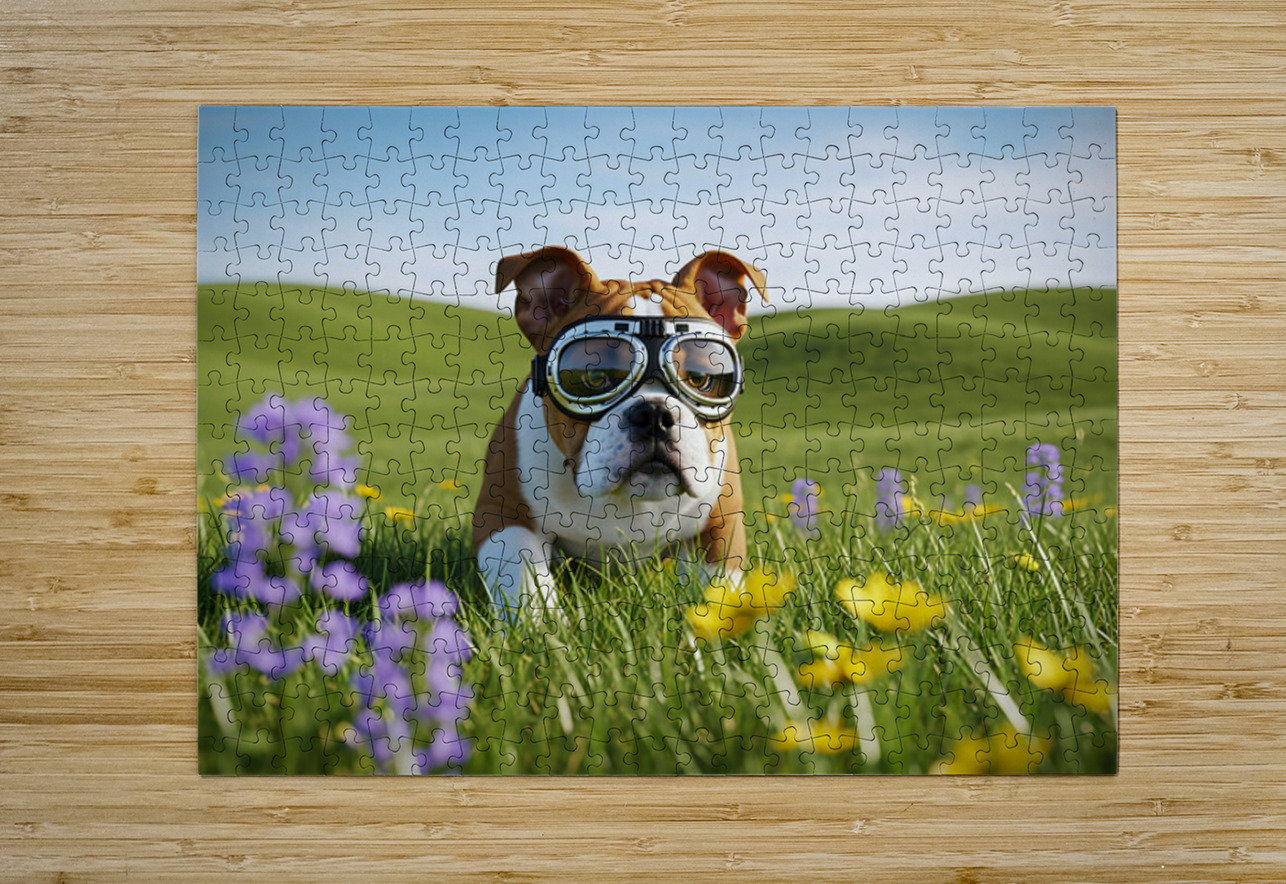 Bulldog Puppy Ready For Takeoff Adventure Puppy Prints Puzzle printing