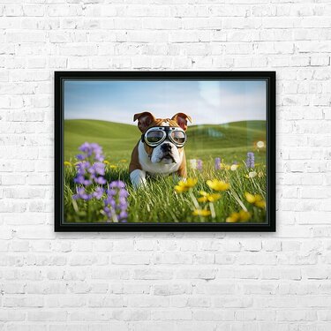 Get this artwork "Bulldog Puppy Ready For Takeoff Adventure" in a framed print.