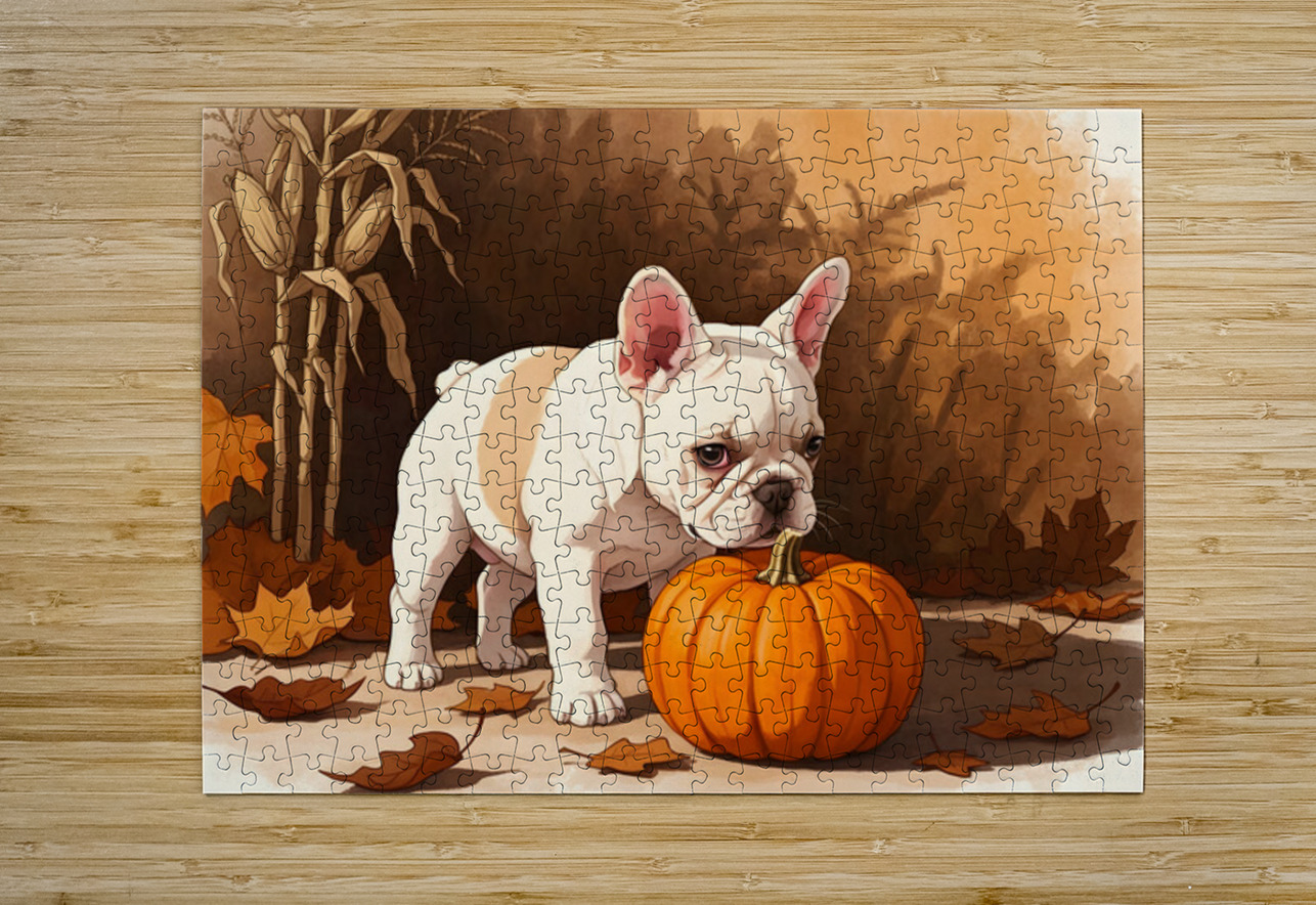 French Bulldog Puppy Discovers Autumn Pumpkin Patch Puppy Prints Puzzle printing