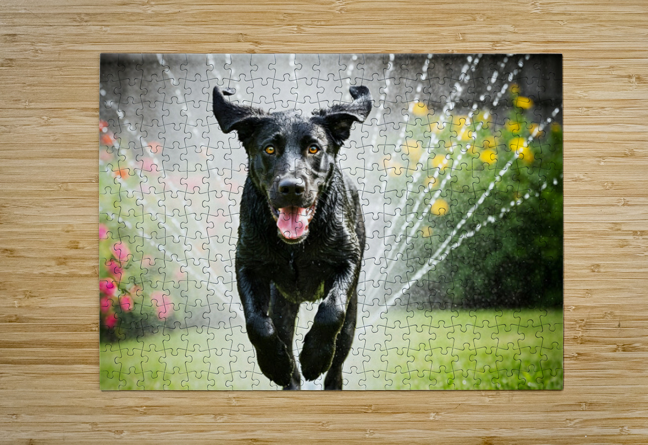 Wet German Shepherd Puppy Rests By Sprinkler Happily Puppy Prints Puzzle printing