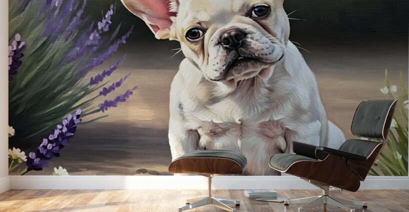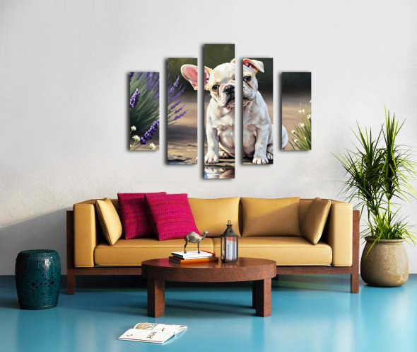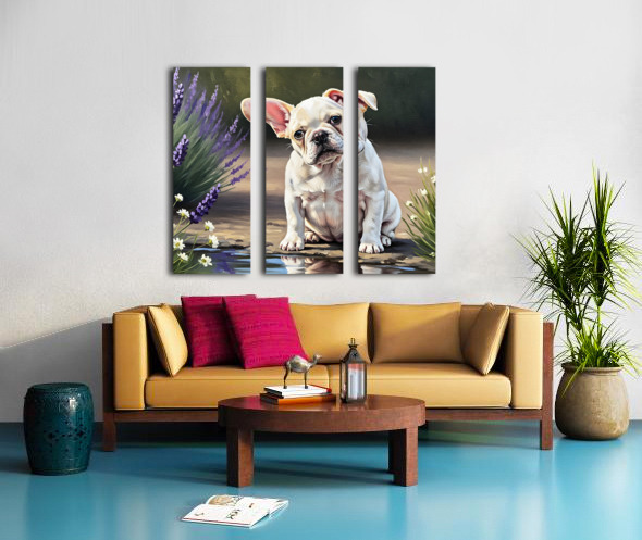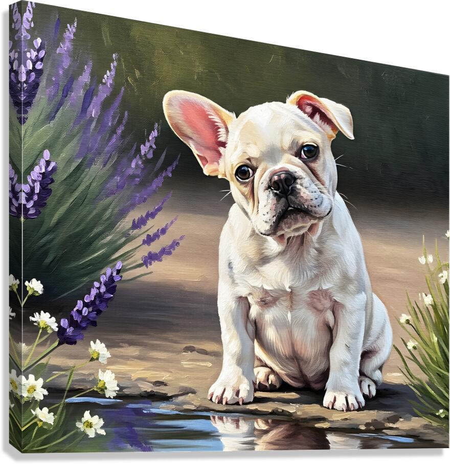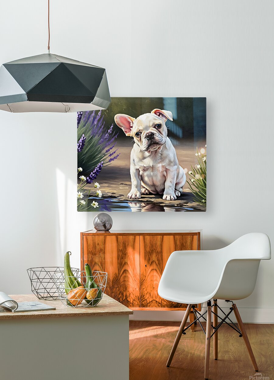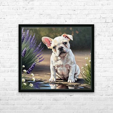 ABOUT THIS ARTWORK: HAPPY FRENCH BULLDOG PUPPY UNDERSTANDS HIS REFLECTION