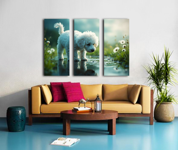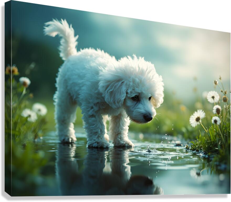 Poodle Puppy Discovers Her Reflection In A Puddle Canvas print