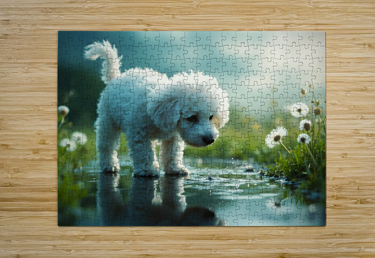 Poodle Puppy Discovers Her Reflection In A Puddle Puppy Prints Puzzle