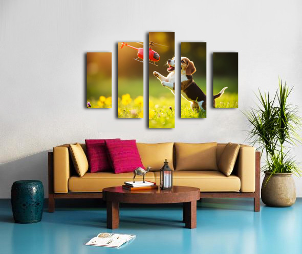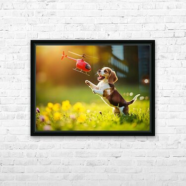 Beagle Puppy Discovers Flying Toy Picture Frame Printing