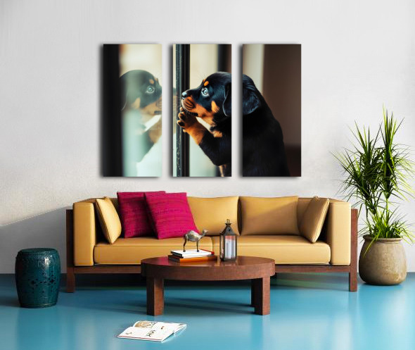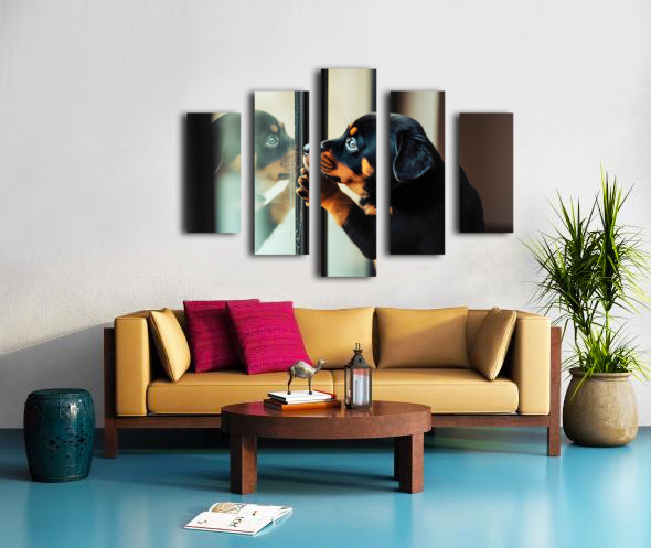 Thoughtful Puppy Contemplates Mysterious Reflection Canvas print