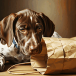 German Shorthaired Pointer Puppy Discovers Shopping Bag Puppy Prints Puzzle