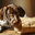 A playful brown and white German Shorthaired Pointer puppy with distinctive spotted markings approaches a wrinkled paper shopping bag on polished hardwood flooring natural sunlight streaming through nearby windows creating warm shadows Digital Artwork.