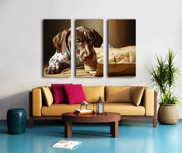 German Shorthaired Pointer Puppy Discovers Shopping Bag Canvas print