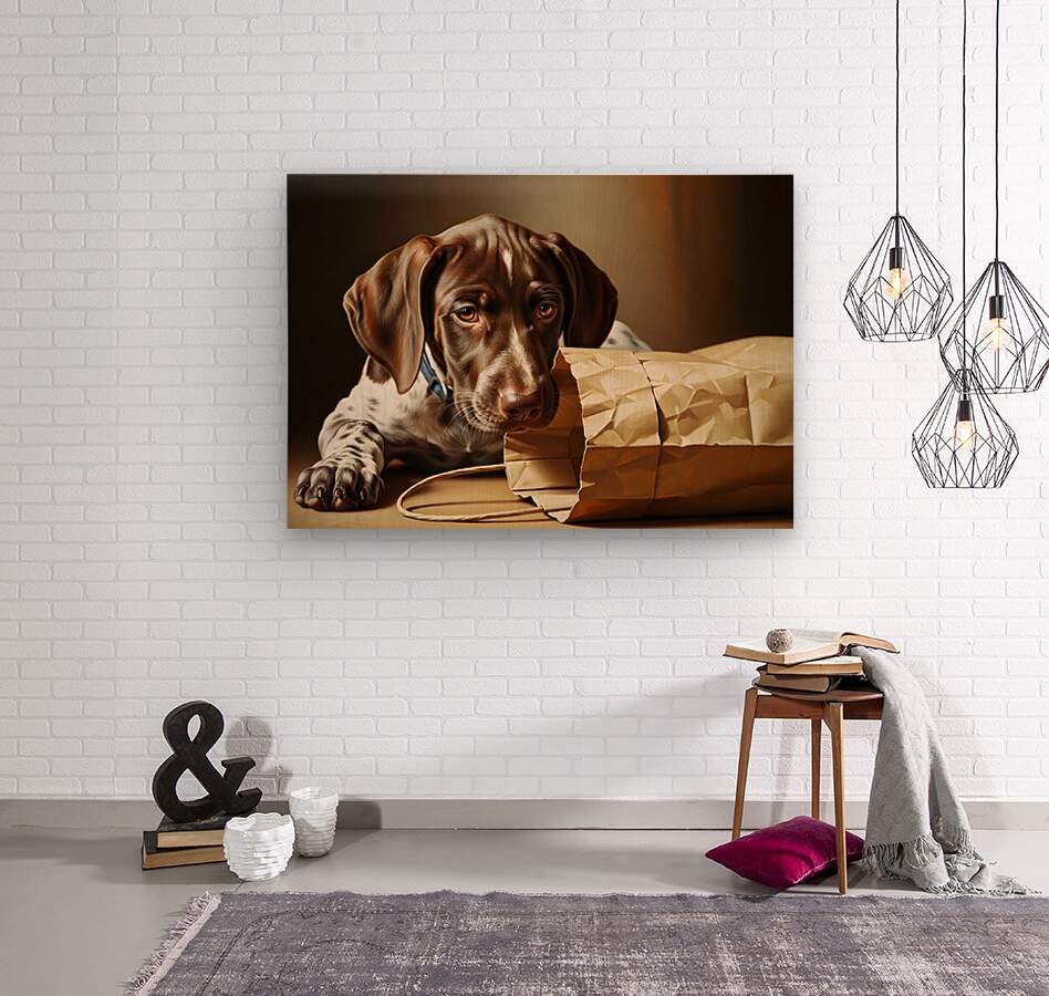 German Shorthaired Pointer Puppy Discovers Shopping Bag Picture Frame Printing