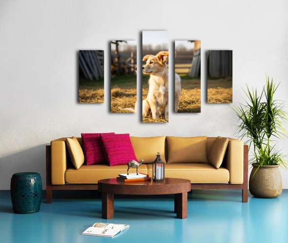 Sleepy Golden Retriever Puppy Rests In Cozy Haystack Canvas print