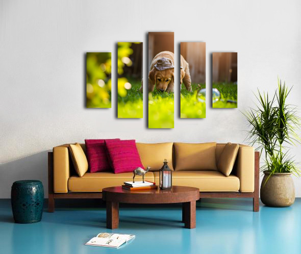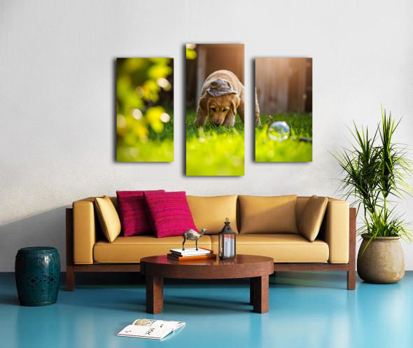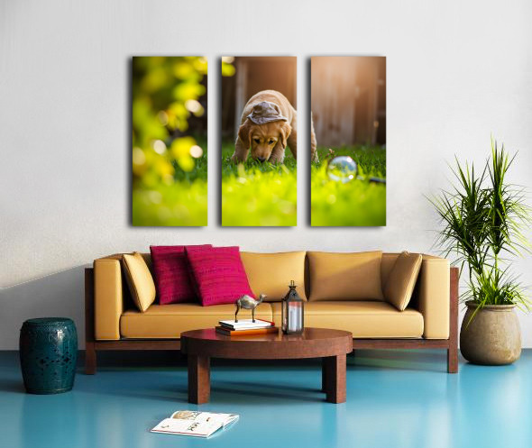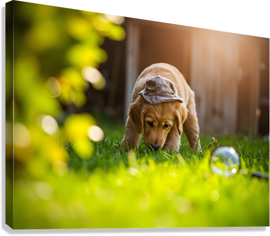 Golden Retriever Puppy Detective Begins Investigation Canvas print
