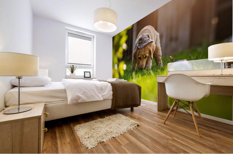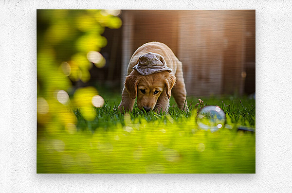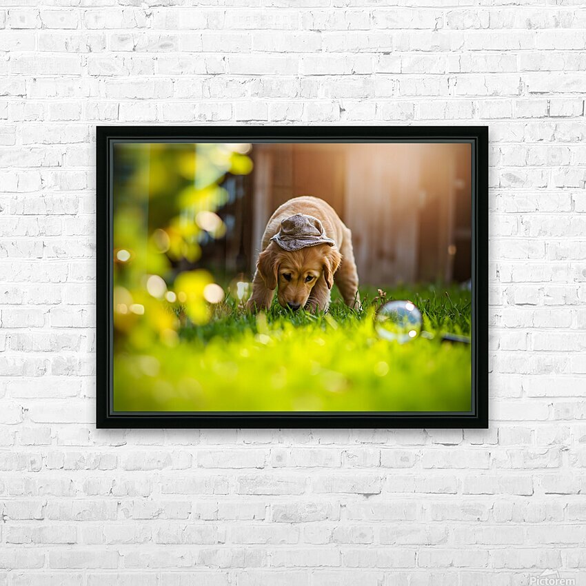 Get this artwork "Golden Retriever Puppy Detective Begins Investigation" in a framed print.