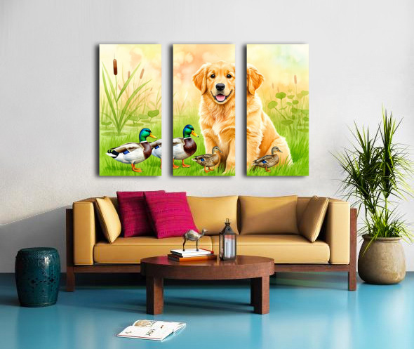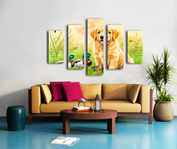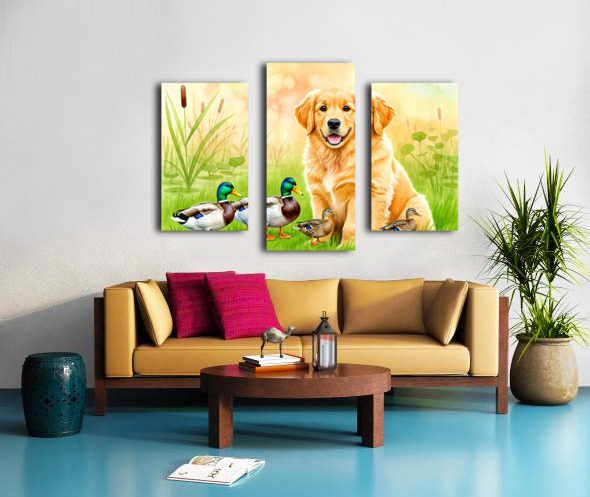 Golden Retriever Puppy Discovers The Pond Canvas print