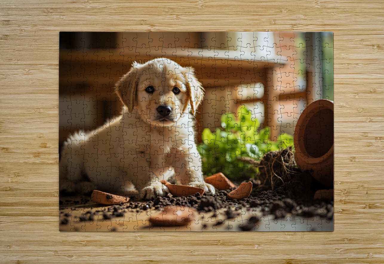 Apologetic Golden Retriever Puppy Looking Sorry Puppy Prints Puzzle
