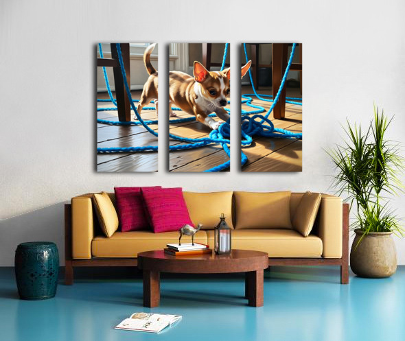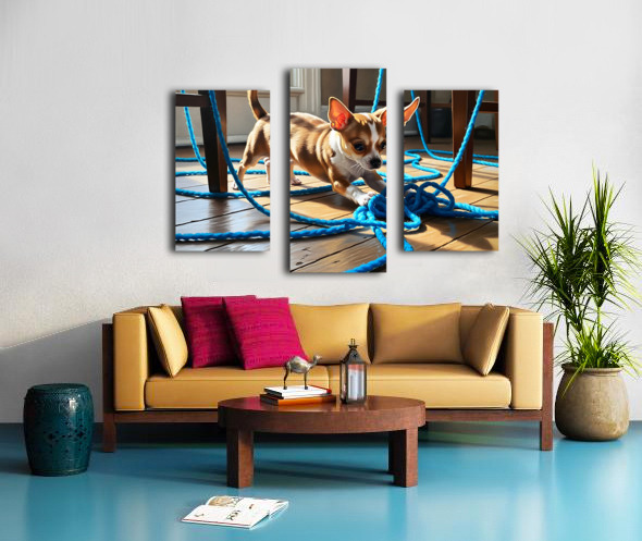 Chihuahua Puppy Discovers Yarn Ball Canvas print