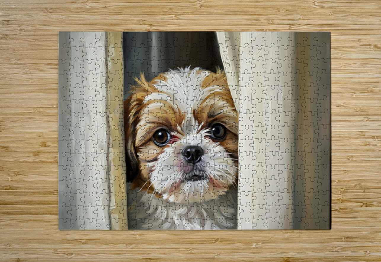 Shih Tzu Puppys Perfect Hiding Spot Behind Curtain Puppy Prints Puzzle printing