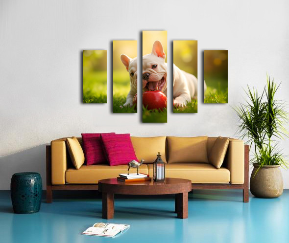 Satisfied Puppy After Apple Snack Canvas print