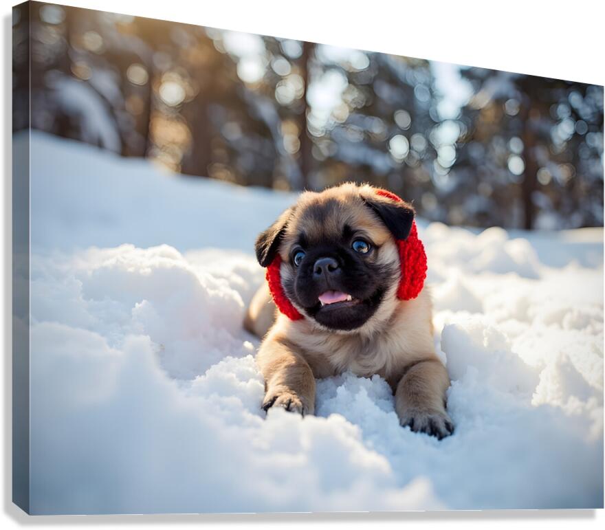 Content Pug Puppy Resting After Snow Day Adventure Canvas print