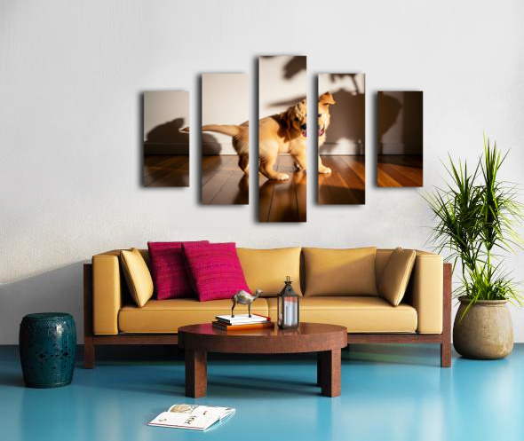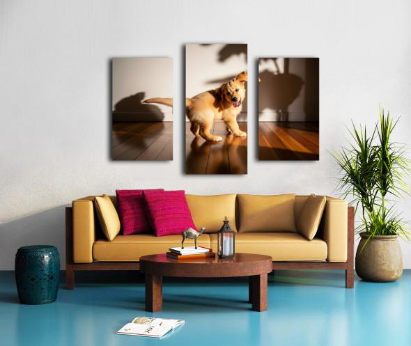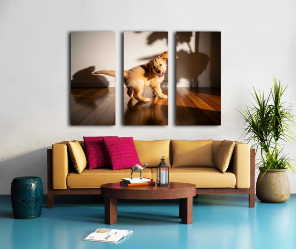 Sleepy Golden Retriever Puppy Rests After Shadow Chase Canvas print