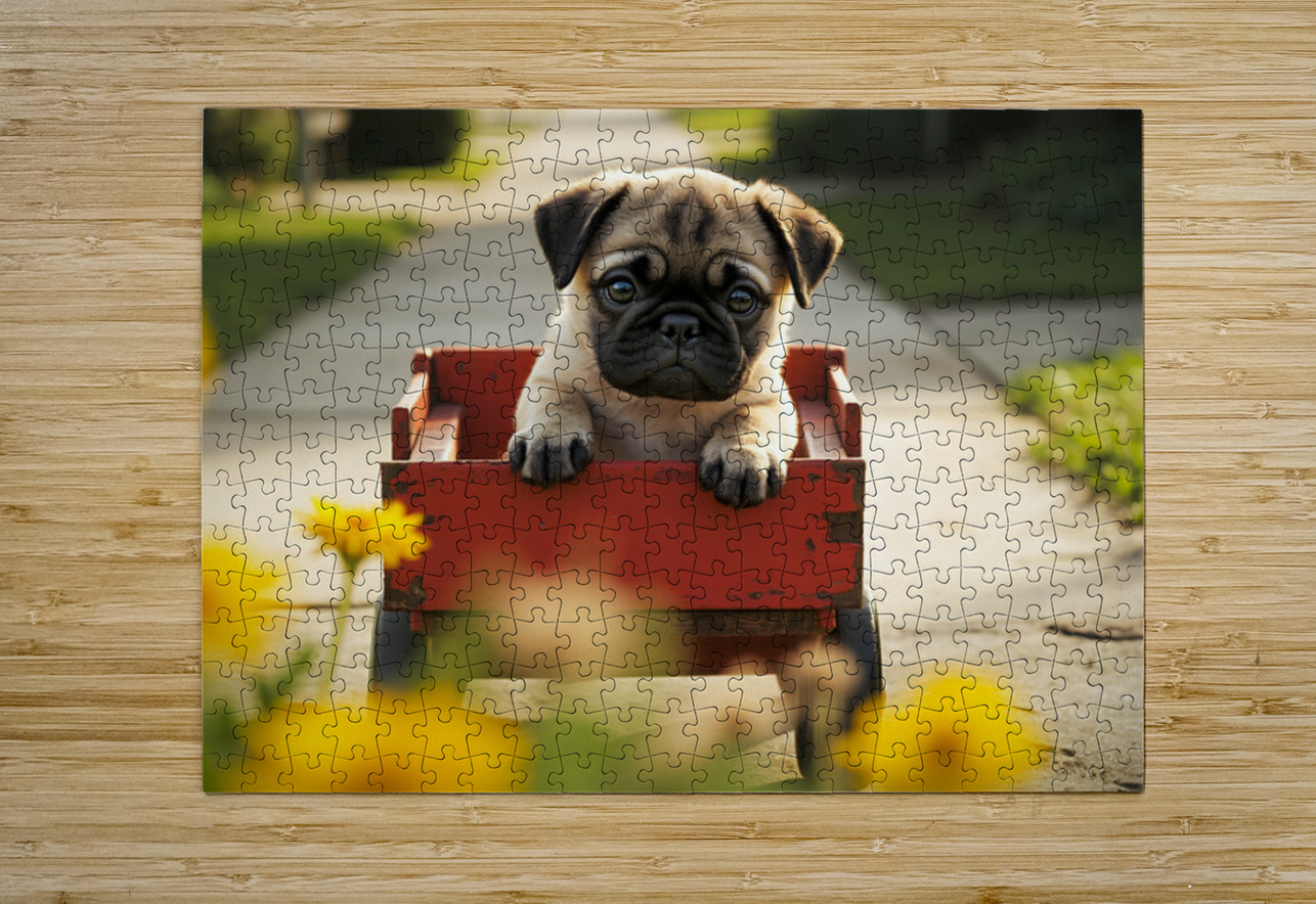 Sleepy Pug Puppy Rests After Wagon Adventure Puppy Prints Puzzle printing