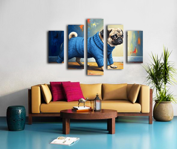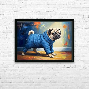 Pug Puppy Successfully Escapes Sleeve Picture Frame Printing