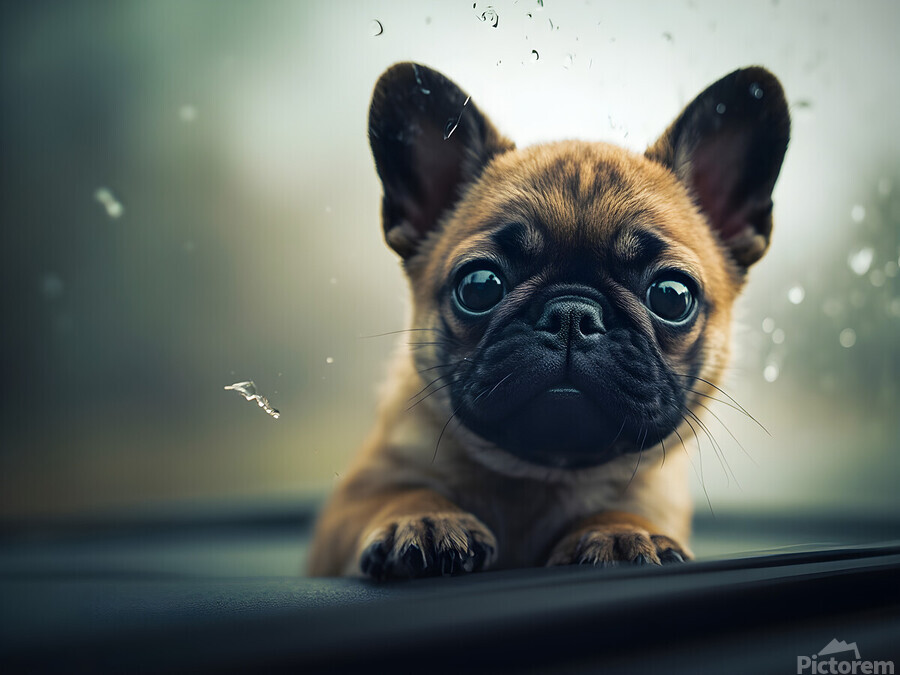 Get this artwork "Content Pug Puppy Settles Down To Watch Rain" in a framed print.