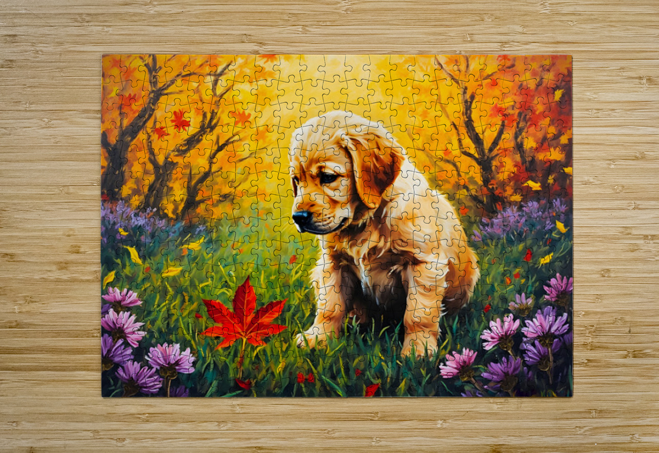 Happy Golden Retriever Puppy Decorated With Leaves Puppy Prints Puzzle printing