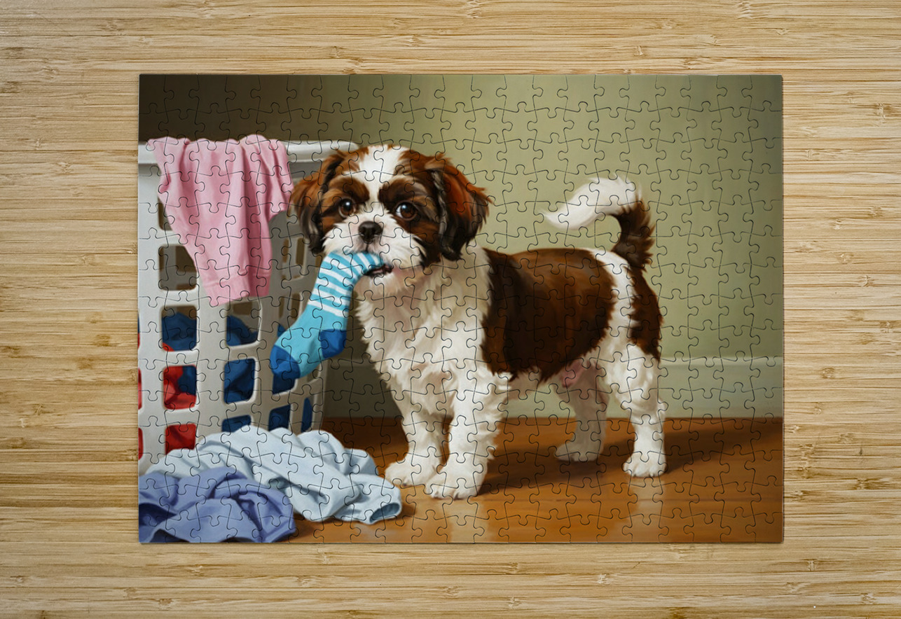 Playful Shih Tzu Puppy Escapes With Stolen Sock Puppy Prints Puzzle