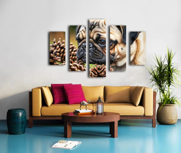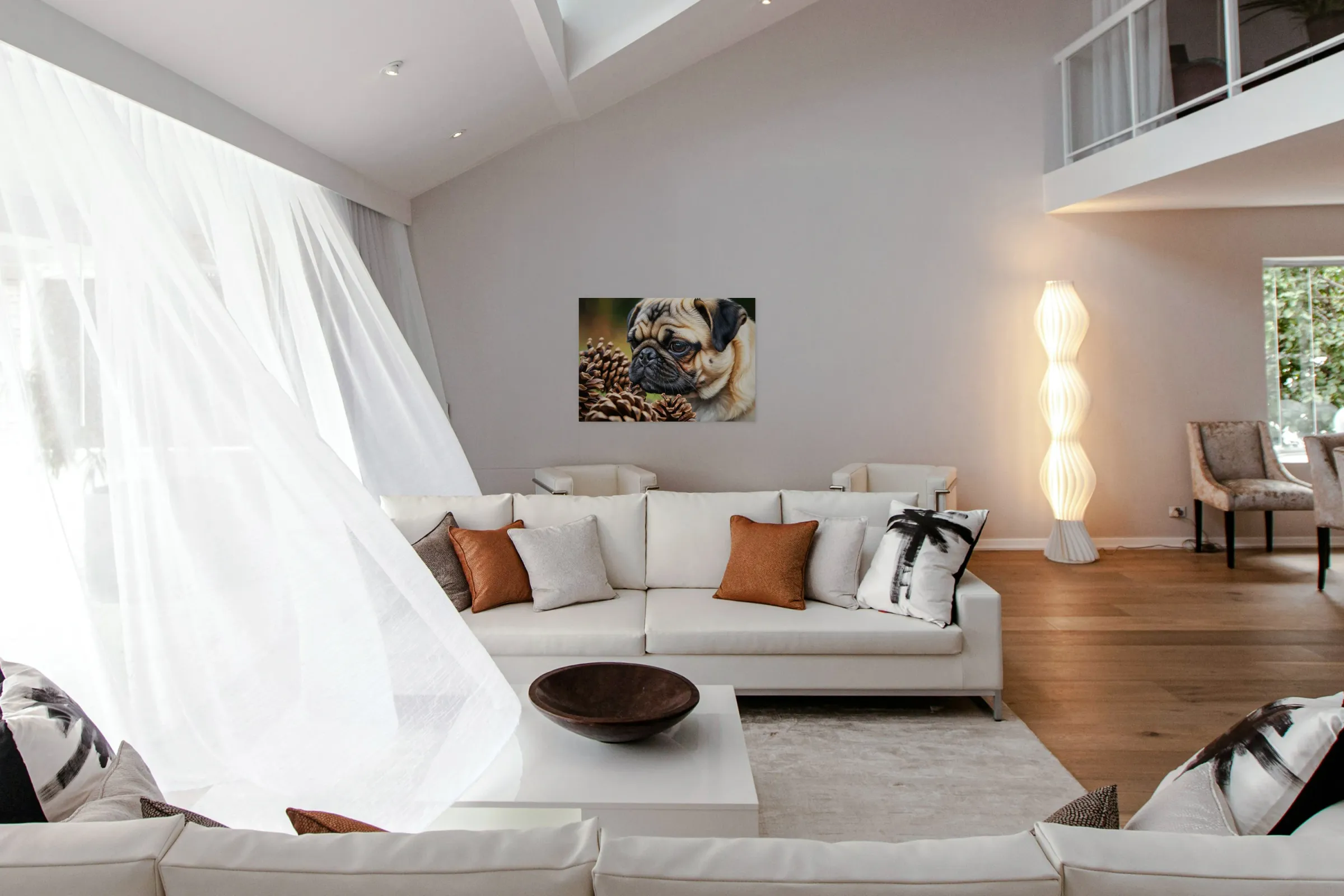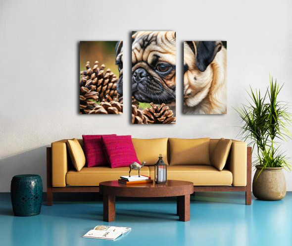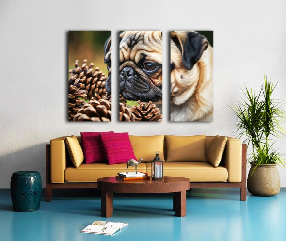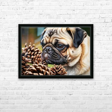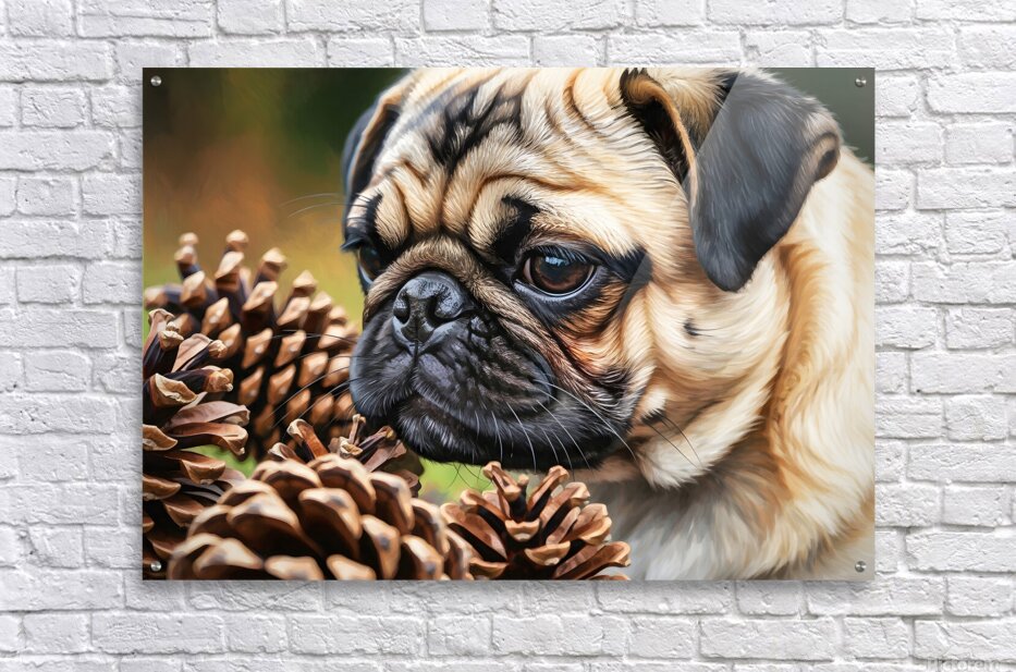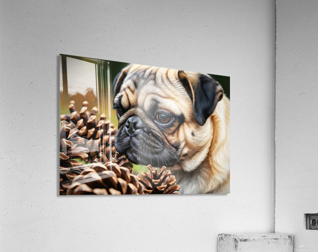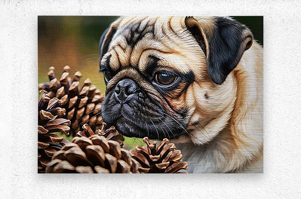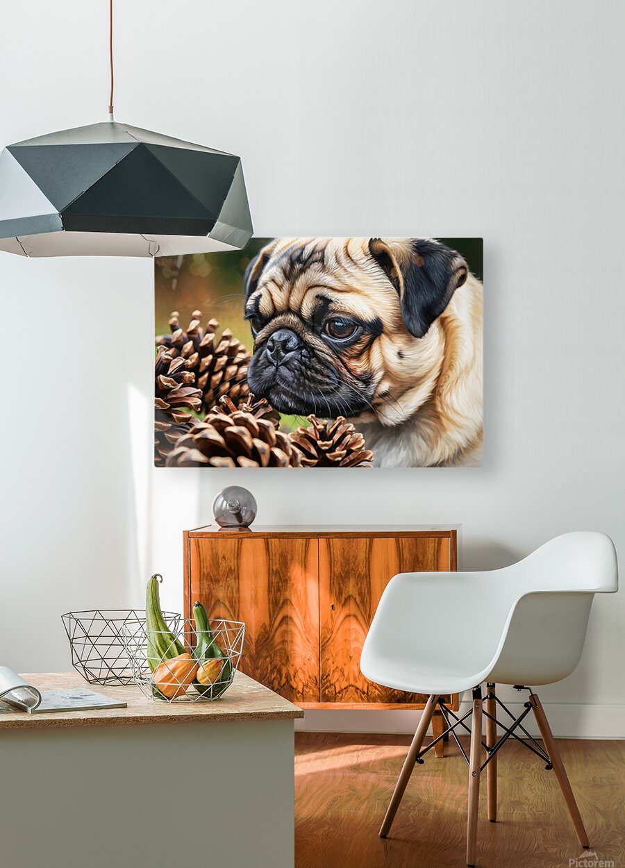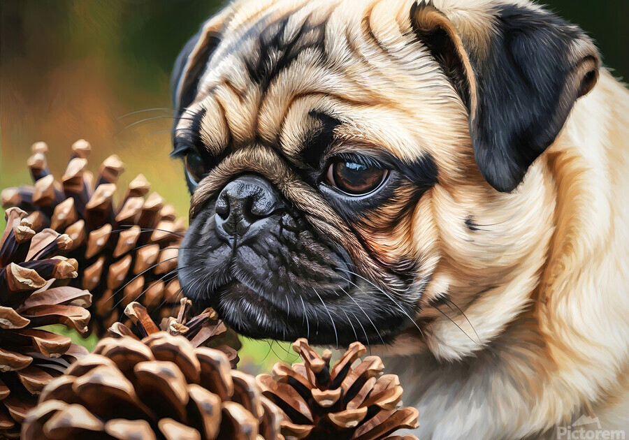 ABOUT THIS ARTWORK: PUG PUPPY DISCOVERS INTERESTING SCENTS ON FLOOR