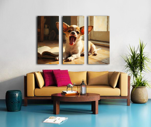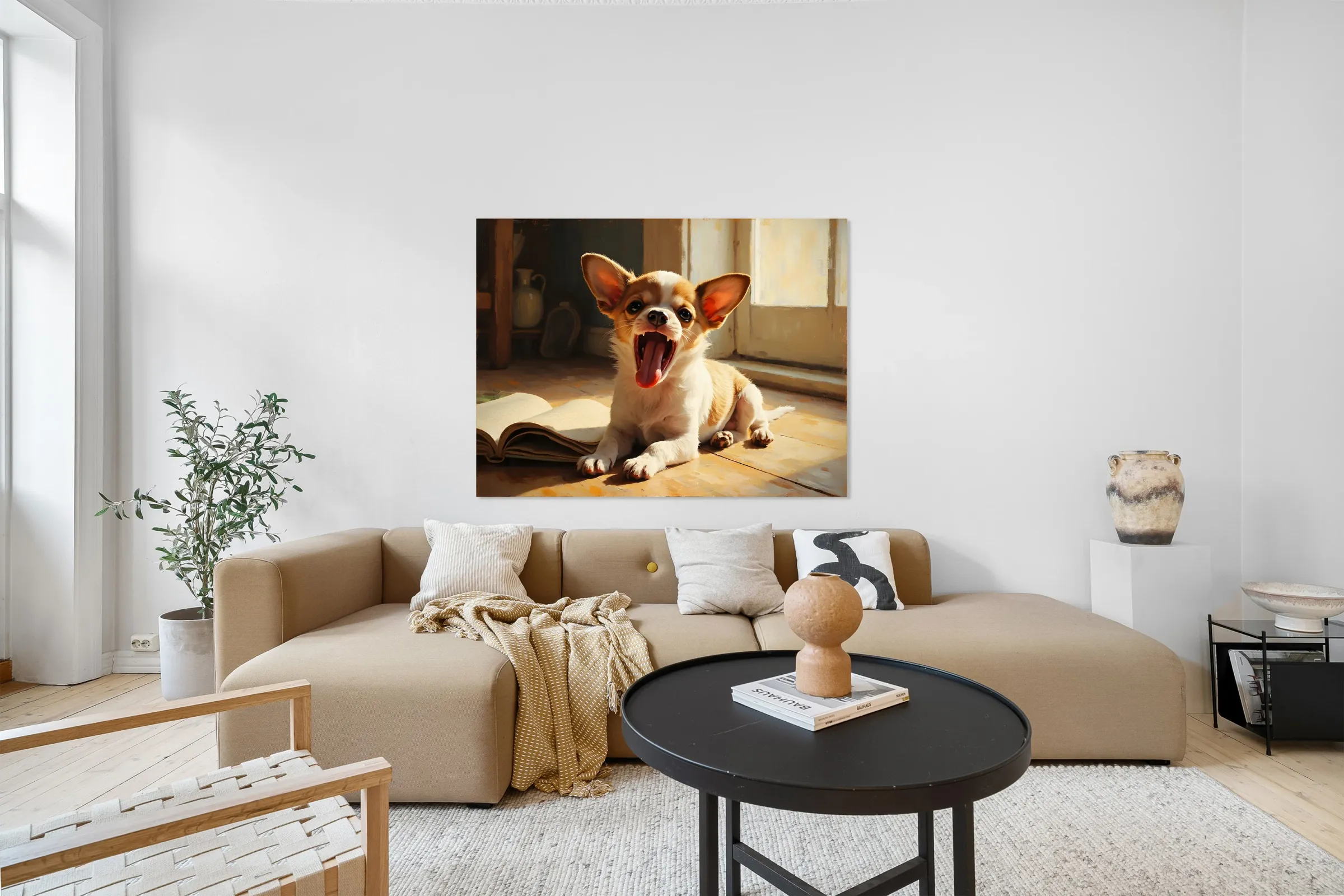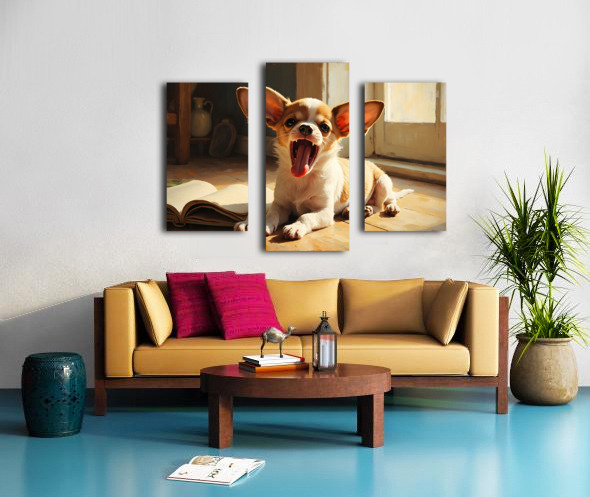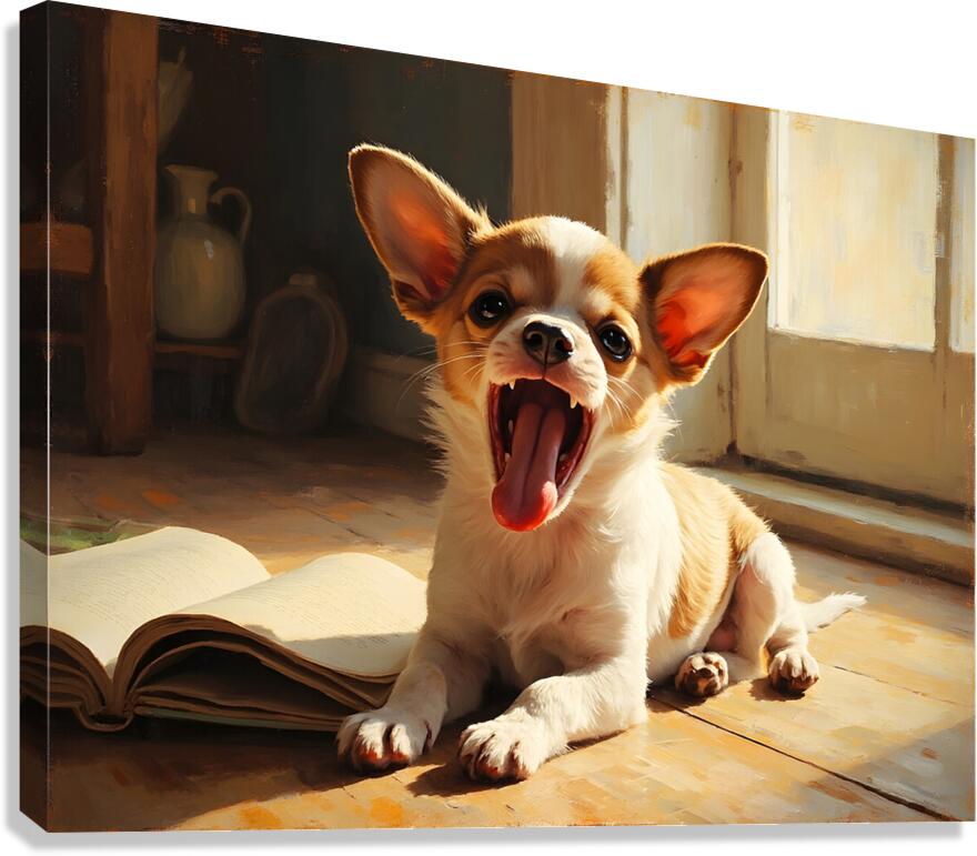 Sleepy Chihuahua Puppy Dreams Over Open Book Canvas print