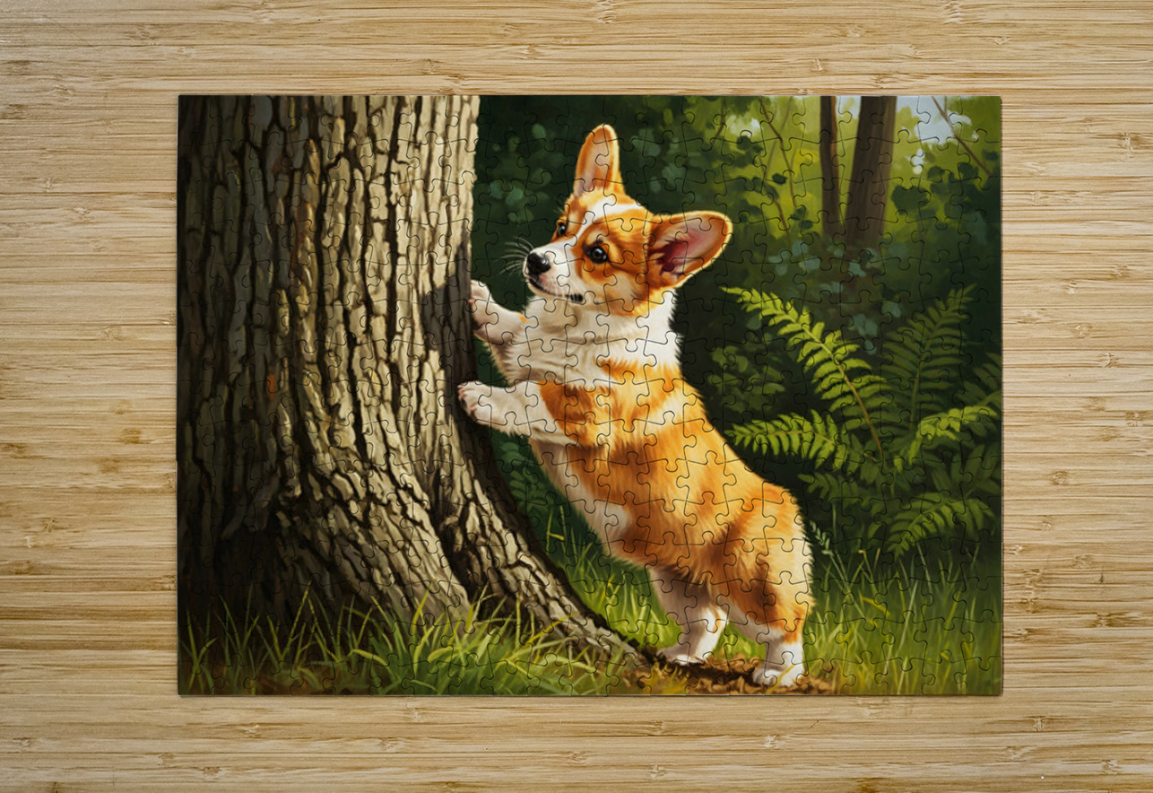 Corgi Puppy Spots Squirrel At Tree Base Puppy Prints Puzzle