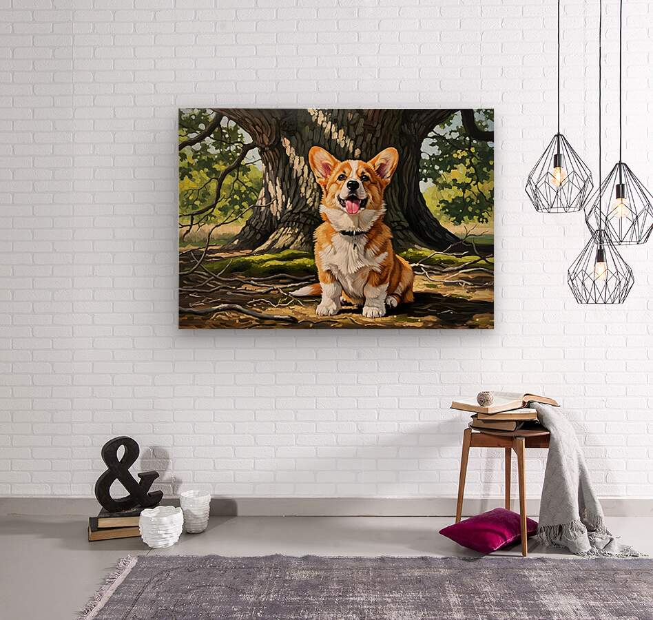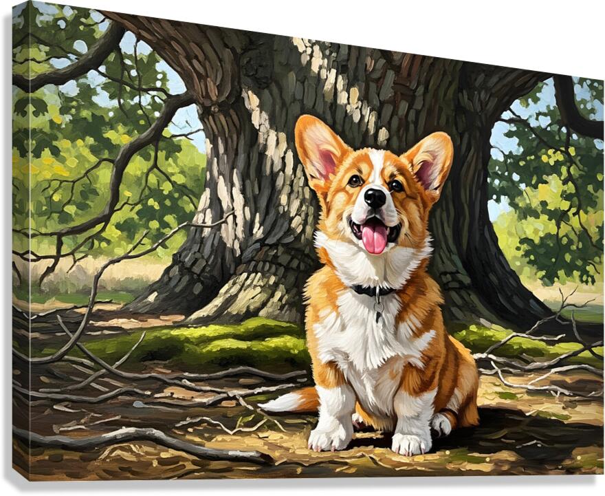 Content Corgi Puppy Dreams Under Tree Shade Canvas print