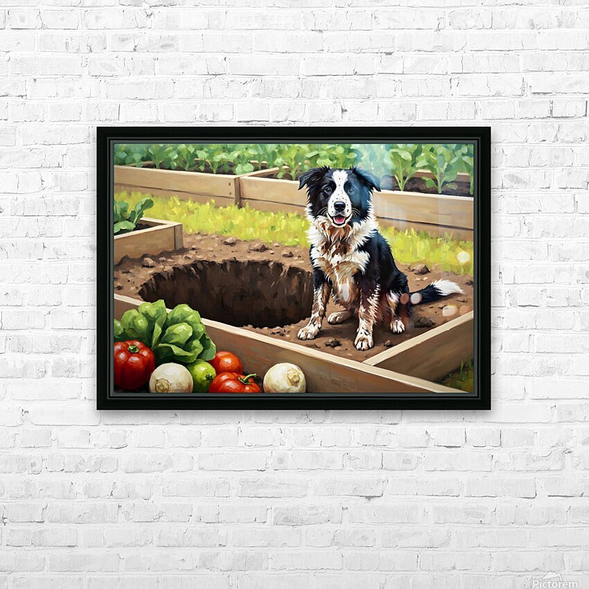 Guilty Border Collie Puppy Realizes Garden Mess Picture Frame Printing