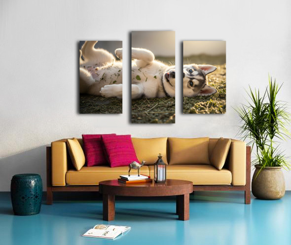 Happy Herb Covered Husky Puppy Canvas print