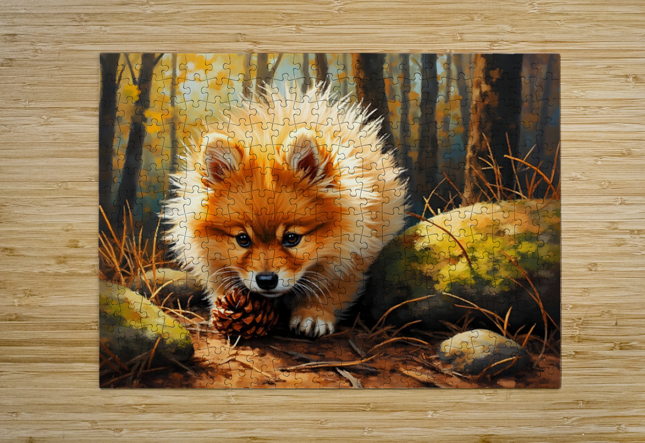 Pomeranian Puppy Discovers Pinecone In Forest Puppy Prints Puzzle printing