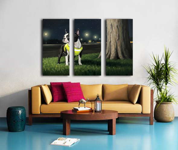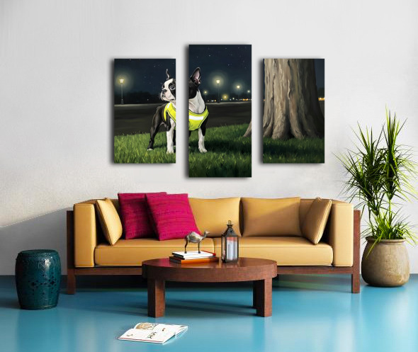 Sleepy Boston Terrier Puppy Returns From Night Walk Canvas print