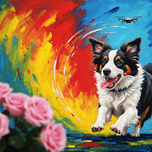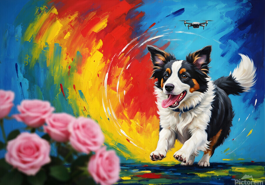 ABOUT THIS ARTWORK: TIRED BORDER COLLIE PUPPY RESTS AFTER EXCITING ADVENTURE